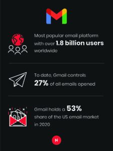 This giant is the most popular email platform, with over 1.8 billion users worldwide. To date, Gmail controls 27% of all open emails. And the numbers are likely to grow in favour of Google over the next few years.